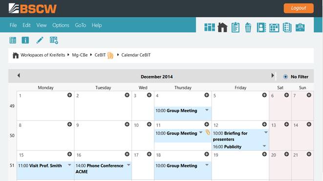 Your personal BSCW calendar is a personal object like your clipboard, your trash or your address book.