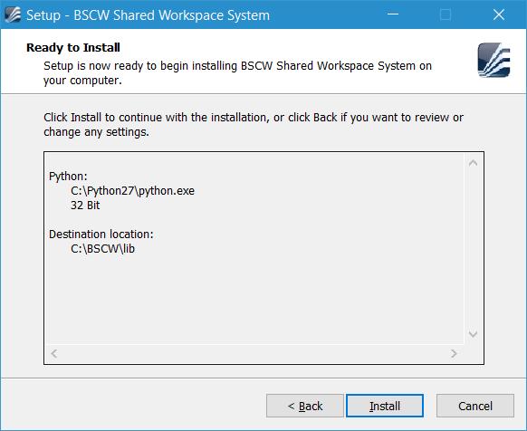 Start the BSCW setup procedure by double-clicking the installer (according to your Python version)